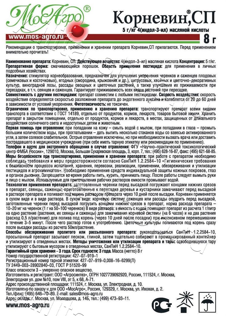 «Корневин» — это регулятор роста растений. Он используется:для укоренения саженцев плодовых, ягодных, декоративных и цветочных культур;