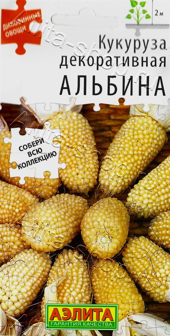Среднеспелый сорт декоративной кукурузы с оригинальными миниатюрными початками молочно-белого цвета, длиной 6-8 см. Период от всходов до созревания плодов 110-120 дней. Растения имеют крепкий стебель высотой 1,8-2 метра. Они идеально подходят для создания вертикальных композиций и живых изгородей. Высушенные початки можно использовать для создания необычных зимних букетов.В средней полосе рекомендуется выращивать рассадным способом. В О/Г высаживают 25-30-дневную рассаду, когда минует угроза заморозков. В южных регионах возможен прямой посев семенами.