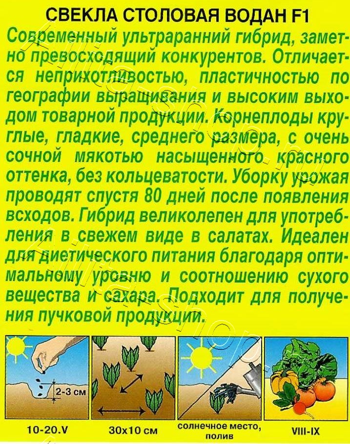 Современный ультраранний гибрид, заметно превосходящий конкурентов. Отличается неприхотливостью, пластичностью по географии выращивания и высоким выходом товарной продукции. Корнеплоды круглые, гладкие, среднего размера, с очень сочной мякотью насыщенного красного оттенка, без кольцеватости. Уборку урожая проводят спустя 80 дней после появления всходов. Гибрид великолепен для употребления в свежем виде в салатах. Идеален для диетического питания благодаря оптимальному уровню и соотношению сухого вещества и сахара. Подходит для получения пучковой продукции.