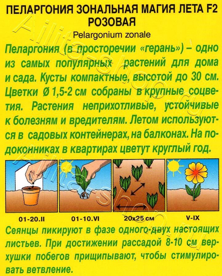 Pelargonium zonaleПрекрасный внешний вид, приятный запах, целебные свойства – пеларгония (в просторечии «герань») – наделена массой достоинств. За ней прочно закрепилась слава цветка-талисмана, который оберегает своих хозяев от любого негатива. Она одновременно может быть и комнатным растением, и садовым цветком. Где бы она не росла – в комнате, на балконе, в саду – более благодарное цветущее растение трудно представить. Отлично растет из семян, формируя при этом растения более компактные, обильнее цветущие, с более крупными соцветиями, чем выращенные из черенков.