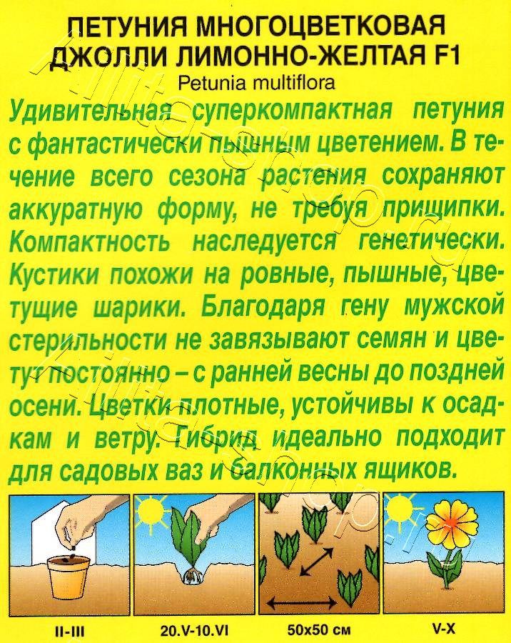 Петуния Джолли лимонно-желтая F1 многоцветковая 7шт