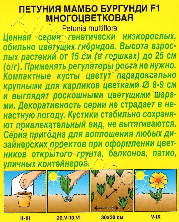| Размер цветка петунии: | От 6 до 10 см |