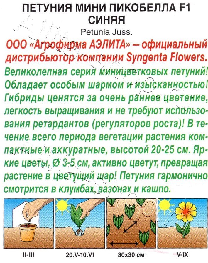 Великолепная серия миницветковых петуний! Обладает особым шармом и изысканностью! Гибриды ценятся за очень раннее цветение, легкость выращивания и не требуют использования ретардантов (регуляторов роста)! В течение всего периода вегетации растения компактные и аккуратные, высотой 20-25 см. Яркие цветы, 3-5 см, активно распускаются, превращая растение в цветущий шар! Петуния гармонично смотрится в клумбах, вазонах и кашпо.Семена в гранулах! Гранулы располагают на поверхности почвы, не заделывая их, хорошо увлажняют из распылителя. При попадании влаги на гранулу оболочка должна раствориться. Посевы накрывают стеклом для сохранения постоянной влажности до полных всходов. Февральским посевам требуется дополнительная подсветка.