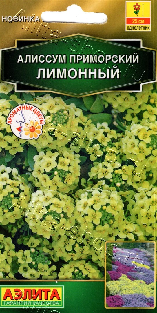 Миниатюрный однолетний алиссум редкого оттенка. Медовый запах его цветков привлекают полезных насекомых и наполняет сад изысканным ароматом. Высота пушистых кустиков около 15-25 см, в ширину они разрастаются до 25-30 см. Для растений характерны: очень ранний срок начала цветения, однородность и компактность габитуса на протяжении сезона. Это великолепная почвопокровная и бордюрная культура. Используется для оформления подпорных стенок, вазонов, каменистых горок. ри создании масштабных ландшафтных композиций применяются сплошные ковровые посадки алиссумов разнообразных оттенков.Посев поверхностный под стекло для сохранения постоянной влажности. Алиссум предпочитает легкие, дренированные почвы с нейтральной кислотностью. Возможен прямой весенний посев семян в открытый грунт.