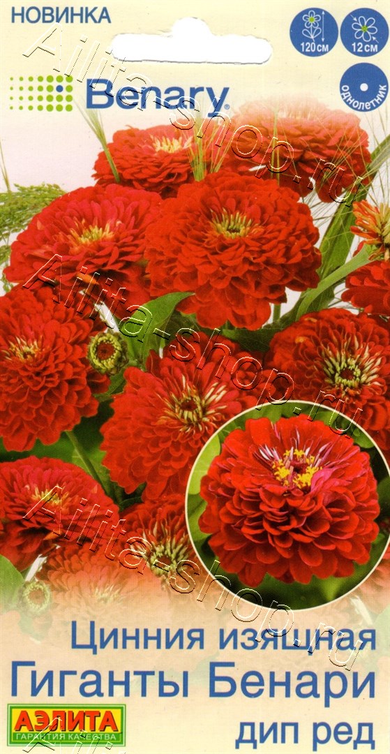ООО «Агрофирма АЭЛИТА» — официальный дистрибьютор компании Benary.Истинный шедевр селекции! Серия, знаменитая во всем мире и ставшая классикой в цветоводстве. Она представлена роскошными срезочными цинниями с феноменально крупными цветками диаметром до 10-12 см. Растения высокорослые (около 1-1,2 м), с длинными и прочными цветоносными побегами. Соцветия махровые, пышные, потрясающих ярких окрасок. Букеты из этих цинний выглядят шикарно, надолго сохраняют свежесть в вазе с водой. В цветниках сорт удивит неприхотливостью и эталонной декоративностью. Растениям следует обеспечить солнечное местоположение, опору и защиту от ветра, особенно в одиночных посадках.