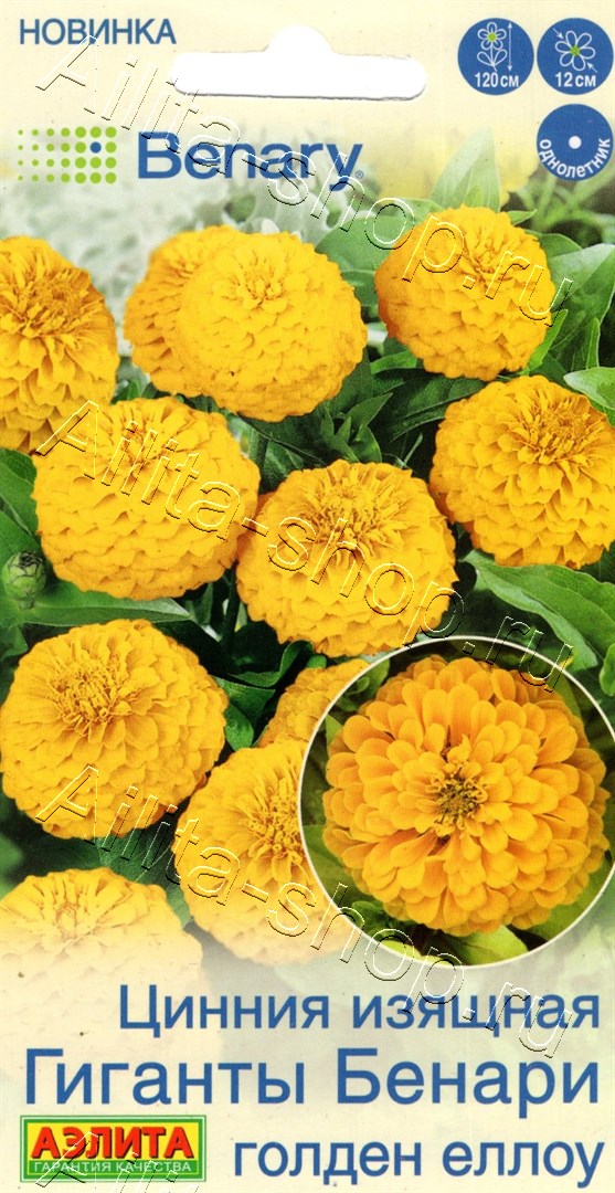 Цинния Гиганты Бенари голден еллоу 7шт