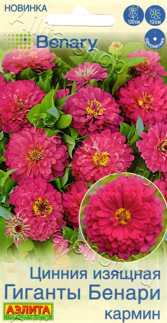 ООО «Агрофирма АЭЛИТА» — официальный дистрибьютор компании Benary.Истинный шедевр селекции! Серия, знаменитая во всем мире и ставшая классикой в цветоводстве. Она представлена роскошными срезочными цинниями с феноменально крупными цветками диаметром до 10-12 см. Растения высокорослые (около 1-1,2 м), с длинными и прочными цветоносными побегами. Соцветия махровые, пышные, потрясающих ярких окрасок. Букеты из этих цинний выглядят шикарно, надолго сохраняют свежесть в вазе с водой. В цветниках сорт удивит неприхотливостью и эталонной декоративностью. Растениям следует обеспечить солнечное местоположение, опору и защиту от ветра, особенно в одиночных посадках.