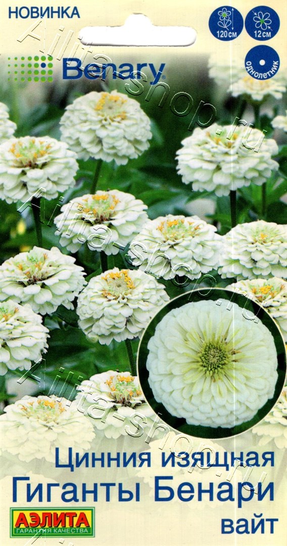 ООО «Агрофирма АЭЛИТА» — официальный дистрибьютор компании Benary.Истинный шедевр селекции! Серия, знаменитая во всем мире и ставшая классикой в цветоводстве. Она представлена роскошными срезочными цинниями с феноменально крупными цветками диаметром до 10-12 см. Растения высокорослые (около 1-1,2 м), с длинными и прочными цветоносными побегами. Соцветия махровые, пышные, потрясающих ярких окрасок. Букеты из этих цинний выглядят шикарно, надолго сохраняют свежесть в вазе с водой. В цветниках сорт удивит неприхотливостью и эталонной декоративностью. Растениям следует обеспечить солнечное местоположение, опору и защиту от ветра, особенно в одиночных посадках.