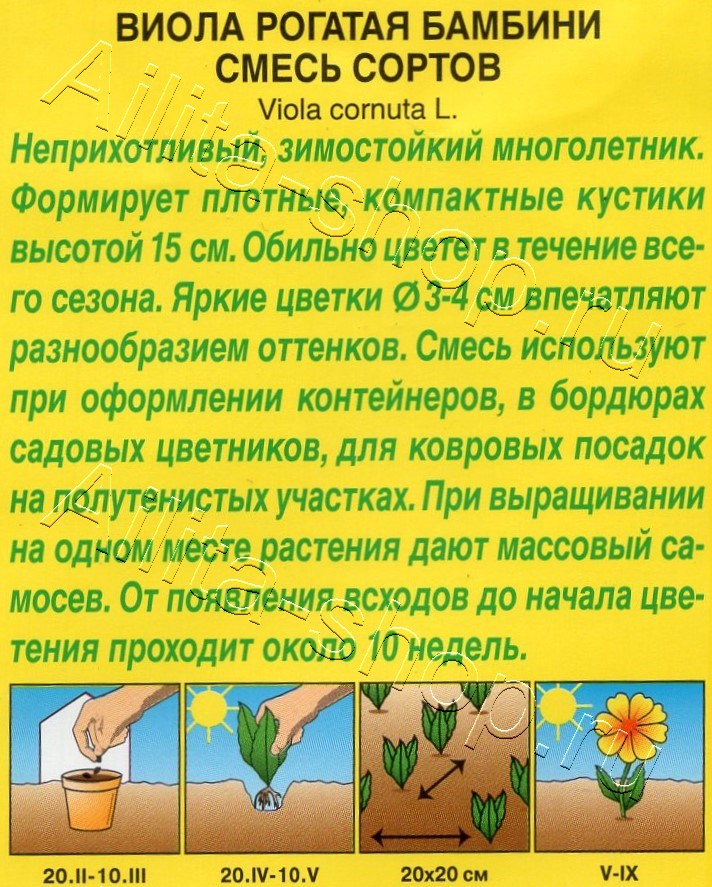 Посев. Для цветения в год посева семена высевают на рассаду в первых числах марта, всходы появляются через неделю. Пикировка в фазе двух настоящих листьев. В открытый грунт рассаду высаживают, не дожидаясь сроков окончания возвратных заморозков. При посеве в открытый грунт в июне-июле цветет на следующий год. Растениям необходимы регулярные поливы, прополки, рыхления и подкормки.